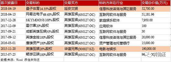 英雄互娱成立于2015年6月,并通过“借牌”实现在新三板上市,随后不断进行并购,收入和利润体量也不断扩张。