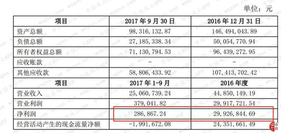 从上图得知,联金所的净利润从2016年的2992.68万下降至2017年前9个月的28.69万,全年大概率业绩严重下滑。