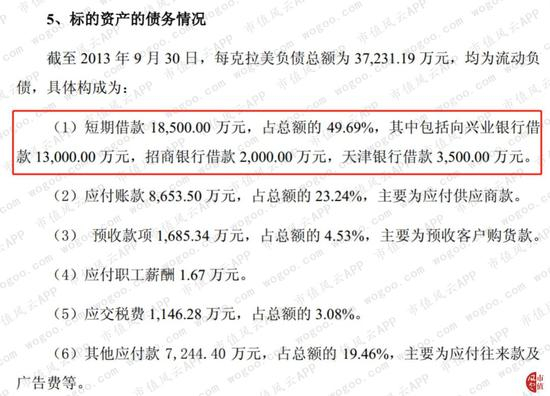 各位老铁请注意,每克拉美同期的资产负债率分别为89.67%、84.1%和82.02%。其中,根据公告披露的债务情况显示,2013年9月30日负债的3.72亿元中包含1.85亿的短期借款,占比近一半。