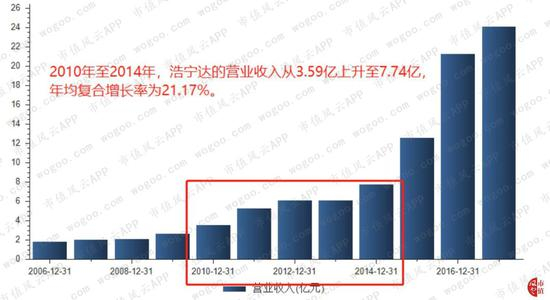上市后,浩宁达从2010年至2014年的营业收入从3.59亿上升至7.74亿,复合增长率为21.17%。