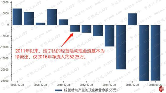 此外,前文提及,经营活动产生的现金流量净额仅2016年为正值,其他年份均为负数,且净流出金额呈持续增长的趋势,8年合计净流出8.5亿。