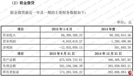 从上图得知,截止2015年8月31日,联金所和联金微贷的资产负债率分别为68.28%和74.2%,且联金微贷在2015年1-8月净利润亏损1293.6万,资产质量似乎相当一般。