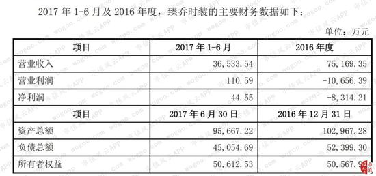 从上表分析得知,臻乔时装2016年亏损8314.21万,2017年上半年“勉强”盈利44.55万,资产负债率为47.09%。