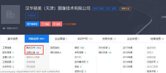 记者再进行深层次挖掘,发现在这25家公司中,还有一家公司的涉案数量异常庞大。该公司名为汉华易美(天津)图像技术有限公司。