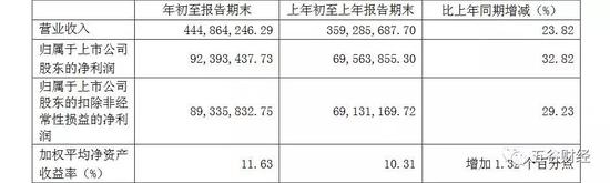 2017年第一季度,金徽酒实现营业收入约为4.62亿元,同比增长3.89%;归属于上市公司股东的净利润约为1.14亿元,与2016年第一季度约为0.92亿元相比,增幅在23%以上。