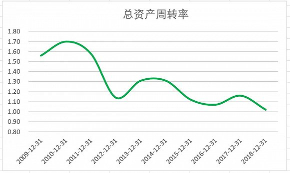 从经营效率看,美的集团2018年资产周转率是2009年以来的最低水平,仅为1.02,相比2017年下降了0.14次。
