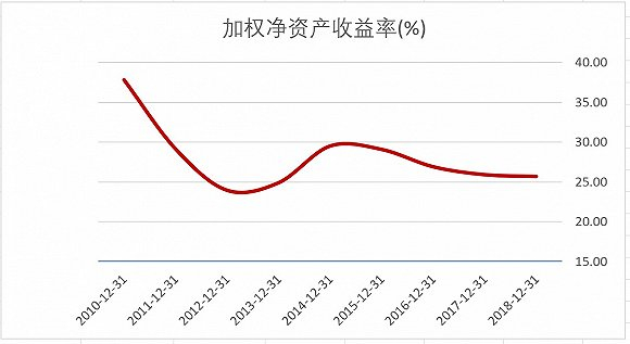 首先得看净资产收益率(ROE),这是杜邦分析的起点。2018年美的集团净资产收益率25.66%,相比2017年微幅下降22个BP。这一数据过去三年总体波动不大,说明美的集团盈利能力相对稳定。