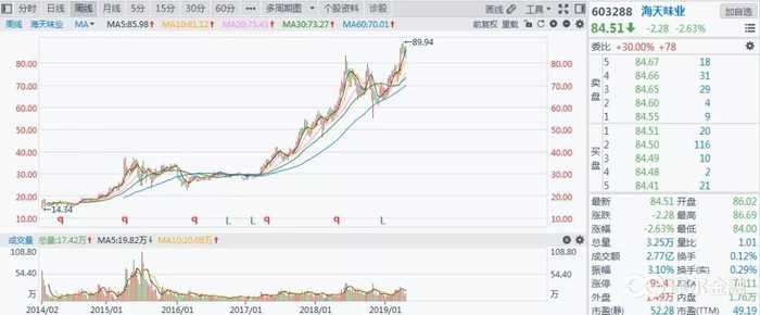 到时说不定千和的股价就会走出海天这种气势——上市5年穿越牛熊,翻了6倍。