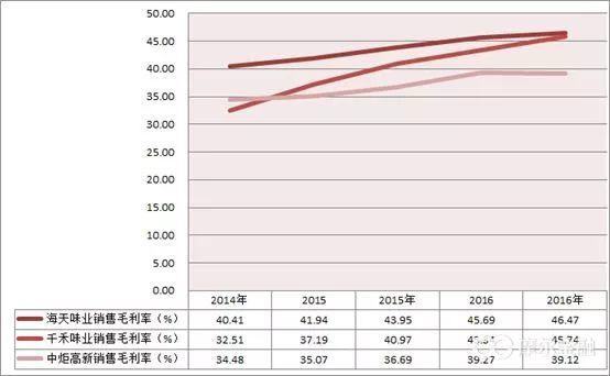 既然走了高端路线,那自然要有对得起高端的利润。下图我们可以看到,千禾和海天的毛利率旗鼓相当,甚至还有赶超的势头。其中,酱油产品的毛利率,两家也是旗鼓相当。