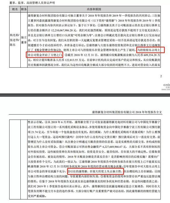 虽然目前证监会的立案调查还没有对康得新的违规行为下达结论性意见以及调查结果,但是从已经公开的资料可以看到,包括独董们的质疑,控股股东占用公司资金,公司很早就失去了独立性怕是跑不了了。