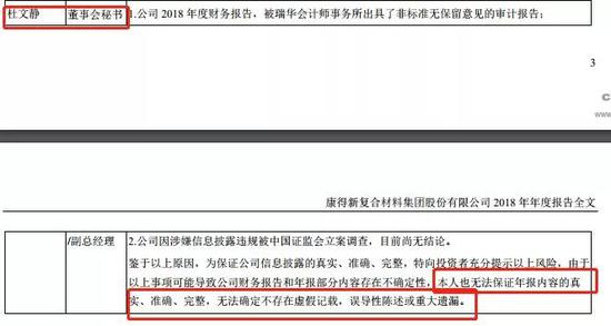 无法保证年报真实性 康得新女董秘也无法保证没污点
