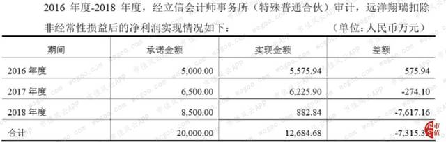 这直接导致远洋翔瑞2016年-2018年未能完成累计未完成业绩承诺,实际扣非净利润累计只有1.27亿。