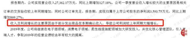 根据2019年一季度报告,田中精机实现营收2.73亿,同比上期增加127.18%;归母净利润3593.75万,同比增长869.25%。田中精机解释称,收入及利润增长的主要原因系部分发出商品在本期确认收入。