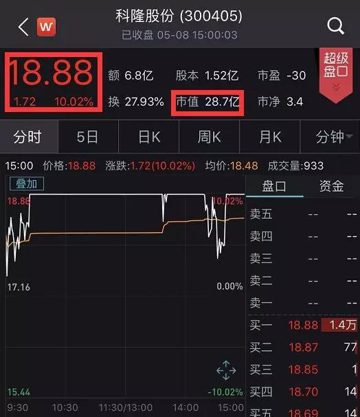 该股叫科隆股份,今日涨停后,股价定格在18.88元每股,市值28.7亿元。