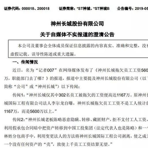 *ST神城被曝欠薪5000万 公司澄清:我们欠的是8000万