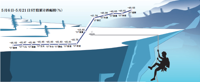 目前ST板块共有136只个股,连续11个跌停个股总数占到ST板块的5%,43只ST股5月份跌幅超过20%,9只ST股5月份跌幅几近腰斩。
