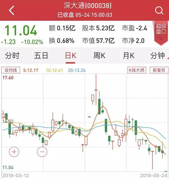5月24日,深大通开盘一字跌停,封单超12万手,股价报11.04元/股,这完全来自于深大通的“猖狂”。