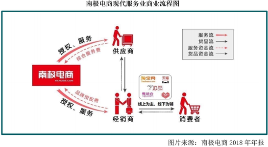 南极电商的现代服务业务,因自身只做供应商与经销商之间的品牌供应商与服务商,参与商品采购和销售的程度不够,直接导致南极电商旗下的商品质量良莠不齐。