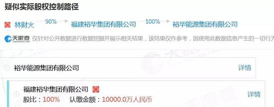 公开资料显示,福建裕华集团有限公司成立于2013年4月,总部位于福建省厦门市。主要从事制造、油轮运输业务。集团下辖五家全资子公司。其中,裕华能源控股有限公司系一家在香港主板上市公司。林财火直接持有该上市公司58.85%股权,是该公司的董事会主席及唯一控股股东。