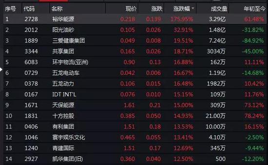 从港股主板个股整体表现看,裕华能源今天全天涨幅居涨幅榜首位。