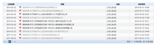 今年3月份开始,便陆陆续续出现了南极电商大股东减持的公告。3月15日,大股东丰南投资通过二级市场大笔减持1877.97万股;3月22日董事长兼实控人张玉祥通过大宗交易系统减持2013.29万股;4月19、29日资本大佬蒋学明及其控股的东方新民控股通过二级市场卖出3952.50万股和3170.02万股。5月14日及5月22日,公司大股东吴江新民实业投资有限公司以及董事刘睿也陆续披露了即将减持的公告。