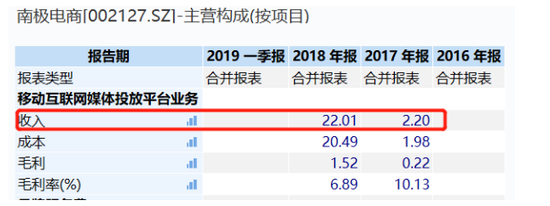 值得注意的是,公司方面或许也是关注到了自身业绩过于抢眼,2017年公司花了9.56亿元,溢价31.73倍做了一起并购,收购了移动互联网广告服务商时间互联。进入南极电商后的时间互联业绩增速惊人,2017年其提供的移动互联网媒体投放平台业务营收规模仅2.2个亿,占南极电商总营收的20%左右,而2018年这个数字到达了22.01亿元,1年时间增长了近10倍,规模超过了南极电商总营收的六成。