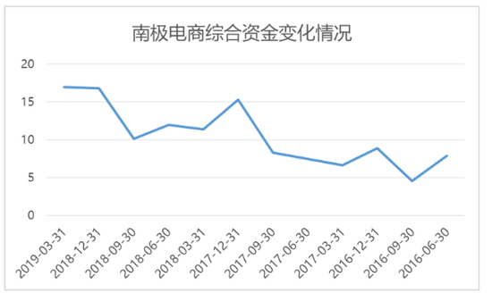 另外分析人士在盘点了南极电商历年的综合资金(货币资金+其他流动资产)后发现,公司的这个指标只有在每年末的时候才显得非常好看,但一过这个时间节点后却出现了明显下滑。
