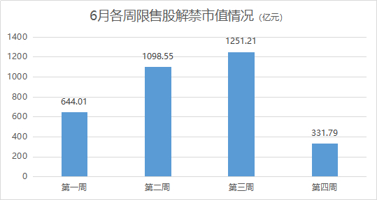 其中,第二、三周解禁市值均超过1000亿元,本月四周解禁市值分别为644.01亿元、1098.55亿元、1251.21亿元和331.79亿元。
