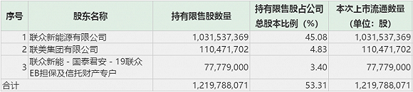 这是公司三年前为收购沈阳新北100%股权所发行的股份。当时发行价格为10.13元/股,期间经历每10股转送10股和每10股转送3股的转派方案,相关股东的持股成本降为3.90元/股。公司最新股价9.44元/股,相关股东解禁收益超过140%。这些股东有三位,分别是联众新能源有限公司、联美集团有限公司、联众新能-国泰君安-19联众EB担保及信托财产专户。
