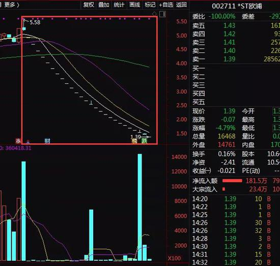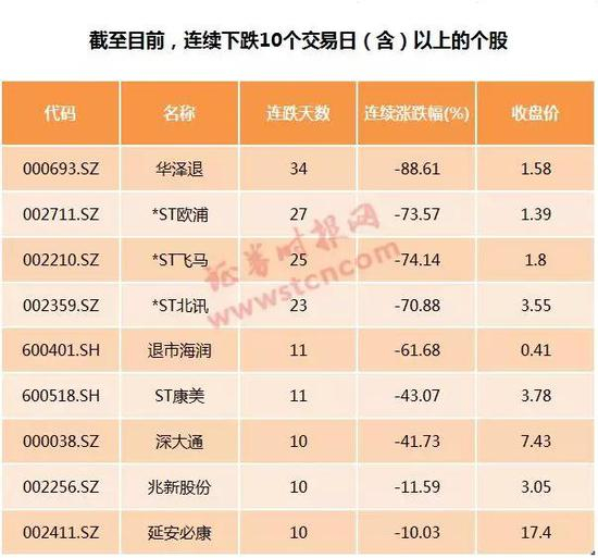 如*ST欧浦今天继续下跌,连续27个交易日下跌,累计跌幅已高达73.57%。