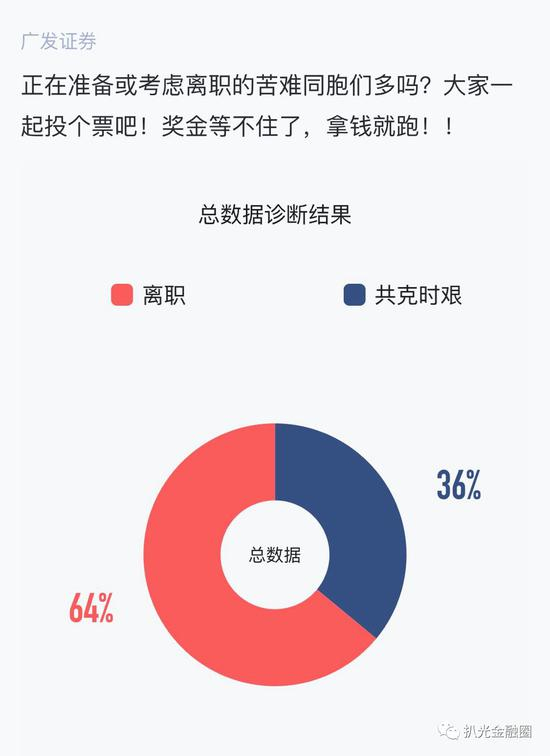 而在某著名职场匿名社交软件上,竟然还有专门的广发证券离职意愿投票,截至目前共有超过300人投票,其中超过6成选择离职。