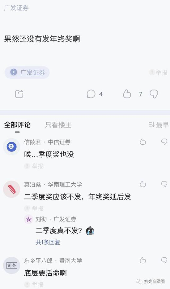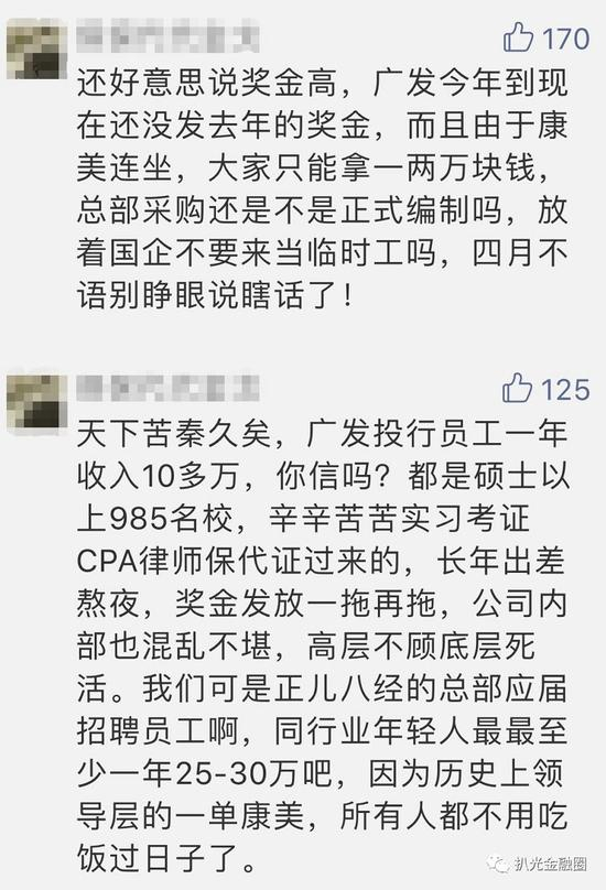 同样是在这款社交软件上,妖哥还意外看到了更多广发基层员工的心声,而核心自然是围绕着因为暴雷事件导致的收入下降。