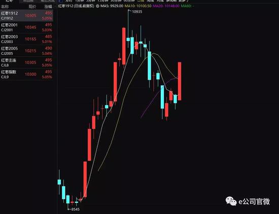 6月13日午后,国内商品市场红枣期货异军突起,主力合约1912盘中涨停冲抵10305元/吨,涨幅达5.05%。