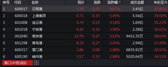 同时,受到该股暴涨带动。截至收盘,wind港口指数上涨3.61%,母企日照港直线拉升涨停,连云港、上港集团、宁波港等多只港口股大涨。