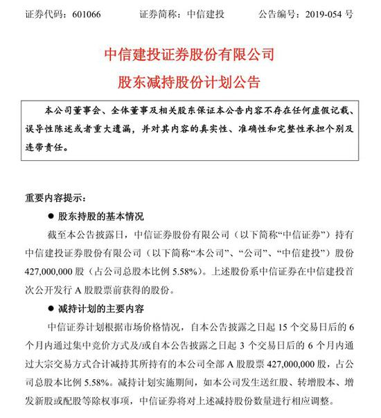 中信证券将清仓式减持中信建投!