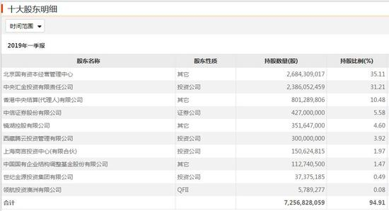 根据中信建投一季报显示,中信证券持有中信建投4.27亿股股份,占比5.58%,目前为中信建投第四大股东。