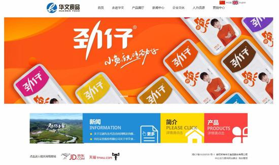 公开资料显示,华文食品成立于2010年,主要从事风味小鱼、风味豆干等传统风味休闲食品的研发、生产与销售,“劲仔”是其主要品牌。