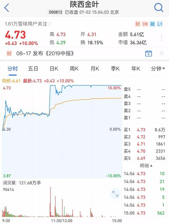 中烟香港的大涨还产生了带动效应,今日午后A股烟草股“涨声”一片。截至收盘,陕西金叶封涨停,新宏泽涨逾6%,香溢融通、金时科技涨近5%,永吉股份涨超4%。