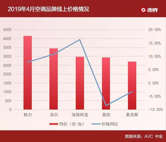 春节以后美的重点推出了2000~3000元左右主打性价比的变频空调。根据公司淘数据监测口径可以发现,2019年一季度美的空调均价同比降低8%,而3、4月单月同比降低10%,无论是数据反应还是类比线上网店的实际价格,都会发现美的空调线上销售价基本上已经与定位中低端市场的奥克斯接近。