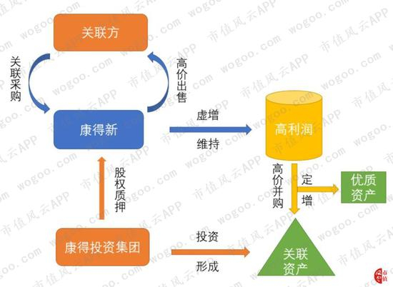 这个游戏还隐藏另一条暗线:通过关联交易虚增利润从而维持高股价,借此大股东康得投资集团可以高比例质押套出现金形成关联资产,同时上市公司可以借助定增并购关联资产或其他优质资产,这也是为什么康得新这么在意股价波动的原因。