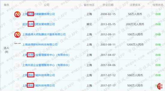 康得新的关联公司往往也带有“得”字,比如天津联得创利信息科技中心、天津众得创发信息科技中心、天津联得创发信息科技中心……上海傲邦董事刘凤喜担任法人的公司也有众多的“得”字。