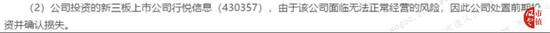 2015年康得新2664万投资了新三板挂牌公司行悦信息(430357),占股3.15%,估值8.46亿。2016年继续增资311万,累计占股3.52%,2016年底上海行悦信息(新三板代码430357)持有2975万。