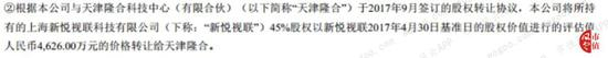 康得新在2017年年报中披露,2017年9月将新悦视联45%转让给天津隆合,期初投资2008万,出售价格为1653万,确认损失负355万。