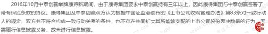因原协议导致康得集团及中泰创赢涉嫌构成一致行动关系,2018年12月19日中泰创赢和康得集团平等自愿地解除了合作协议。