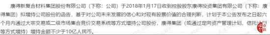 2018年1月17日控股股东康得集团拟在半年内增持10亿。