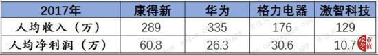 毛利率高的结果就是康得新人均净利润逆天,2017年高达60.8万,比华为、格力电器、激智科技都高得多。值得注意的是,神雾环保和神雾节能在没出事之前也是人均净利润爆表: