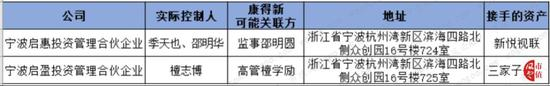联系上面提到的宁波启盈投资管理合伙企业,顿然有种豁然开朗的感觉:两家公司名字差一个字,办公地址在隔壁,注册时间也一致,都在2017年6月21日。