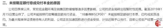 2019年1月15日康得新预先打了预防针,公告2018年第一期、第二期短融券可能兑付不了,2019年1月16日第一期短融券债务违约。