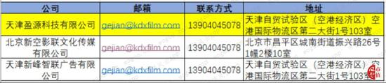 上文提到天津新峰智联广告有限公司法定代表/董事/总经理都是徐曙,徐曙是康得新的总经理,葛健是监事。天津新峰智联广告有限公司联系方式13904045078,邮箱地址是gejian@kdxfilm.com,应该是高管监事葛健的手机号码和邮箱地址,葛健也是康得新的高管,出现在2014年第三期股权激励名单里,用天眼查可以查出三家公司都是同样的联系方式