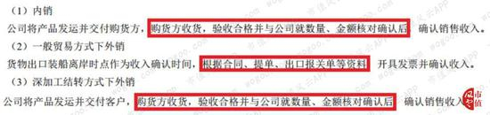 康得新在收入确认上比同行业激智科技激进得多,激智科技必须等到对方收获验收或者海外提单后才确认收入,康得新交付就可以确认收入了。